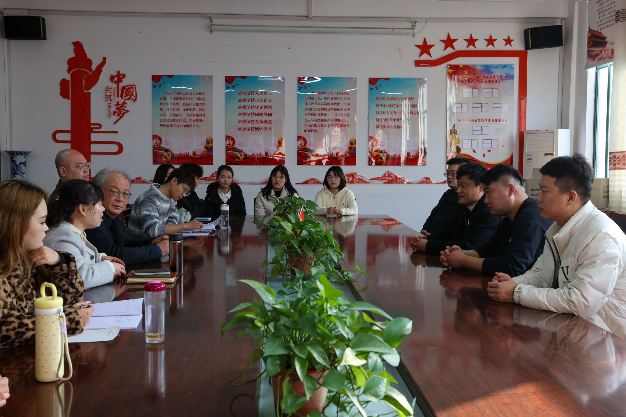 3 月 10 日下午,皖西北商贸城企业代表来到我校,就进一步推进校企合作事宜展开深入交流。校党委委员、副校长陈绪龙,校党委委员、办公室(宣传部)主任(部长)徐常恺及小学教育学院师生参加交流。
