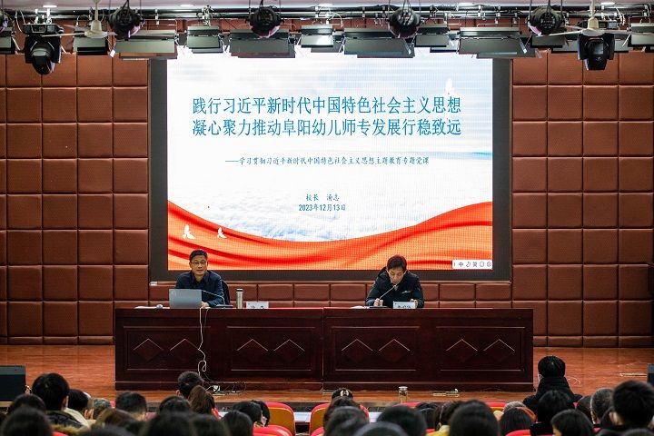 按照市委主题教育工作安排,12月13日下午,校党委副书记、校长汤志为小学教育学院师生作题为《践行习近平新时代中国特色社会主义思想  凝心聚力推动阜阳幼儿师专发展行稳致远》的专题党课报告,报告会由小学教育学院党总支书记朱启俊主持,小学教育学院200名师生代表参加报告会。