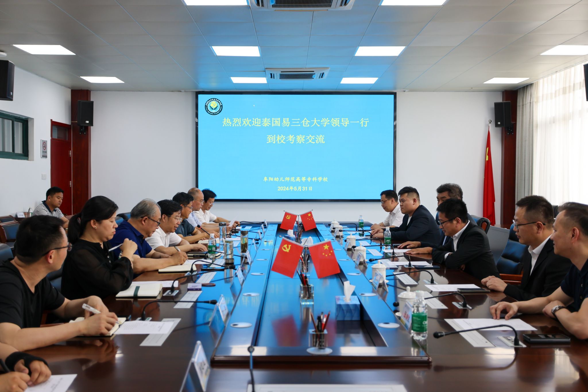 5月31日,泰国易三仓大学亚洲创新学院学术院长谢宗顺一行到访我校,就推进两校教育交流合作举行座谈。校党委书记董志诚,校党委副书记、校长汤志,校党委委员、副校长陈绪龙,校党委委员、办公室主任徐常恺出席会议,相关部门负责人参加交流座谈。