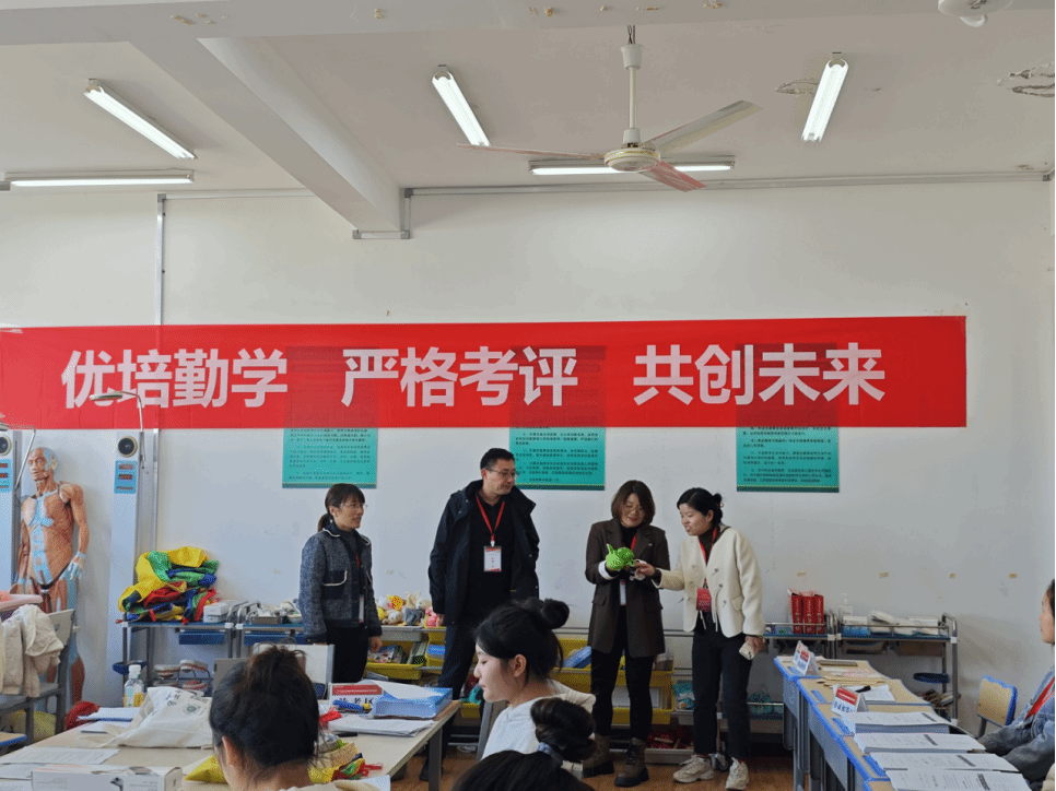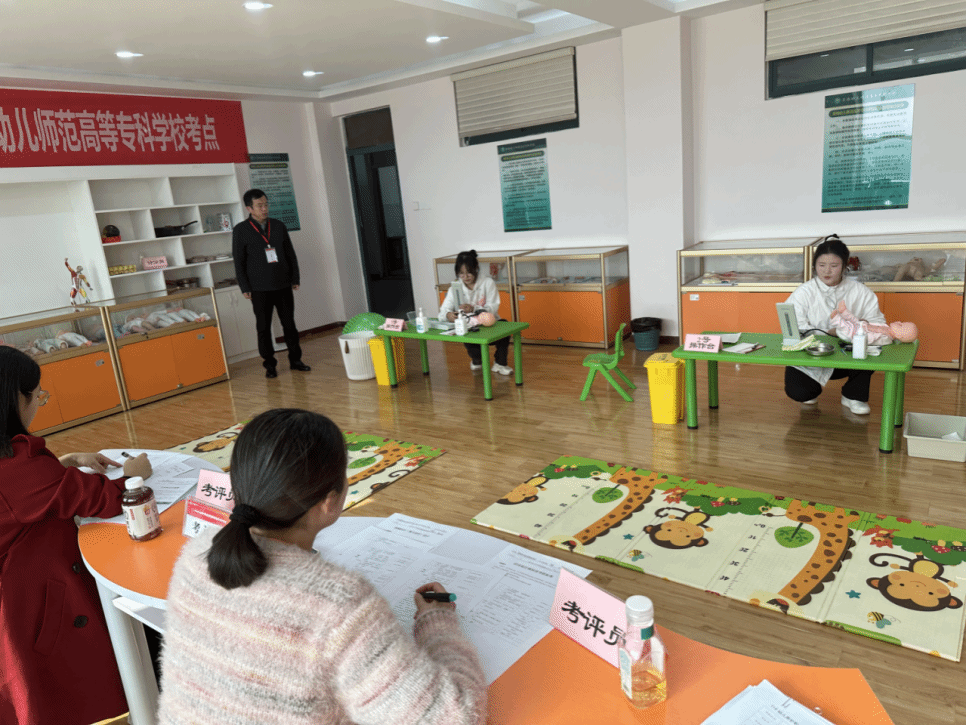 学校高度重视此次考试,考前,学前教育学院多次召开考试工作会议,对考试宣传、学生选拔、考前培训、考务安排等方面进行周密部署。成立专业教师团队,严格按照培训计划,采用理论学习、实操训练、模拟考核等形式,对学生进行了专业的系统培训。考试期间,副校长陈绪龙、监察室主任郑长胜、教务处副处长刘阳、学前教育学院负责人张军强、党总支书记张凌艳全程开展巡考和指导工作。