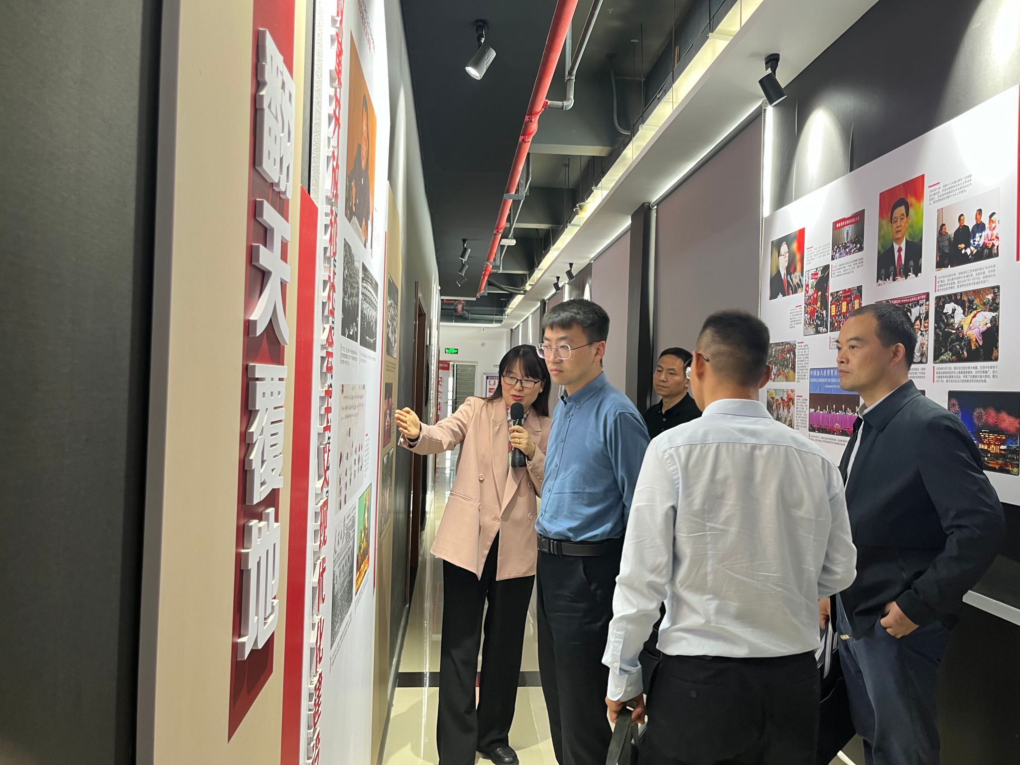 中心的百年党史文化长廊”,创新运用丰富的图文展示打造“开天辟地”“改天换地”“翻天覆地”“惊天动地” 四大主题板块,构建起沉浸式学习空间,带领参观者跨越百年时光,感悟党的光辉历程;“思源读书角”这一区域以 “传承荣誉、浸润理论、数字赋能” 为核心,精心规划 “马院荣誉”“思源读书”“数字思政” 三大功能板块,集中展现学院在思政教育领域的特色优势与创新探索。调研中,刘海燕强调,要充分用好党史这本“最好的教科书”,让新就业群体能够及时补充理论营养,并在“对标先进”的过程中,清晰明确自己该如何去做、怎样去干;要通过常态化读书活动,引导新就业群体在经典研读中筑牢信仰之基,在互动交流中明晰责任使命。