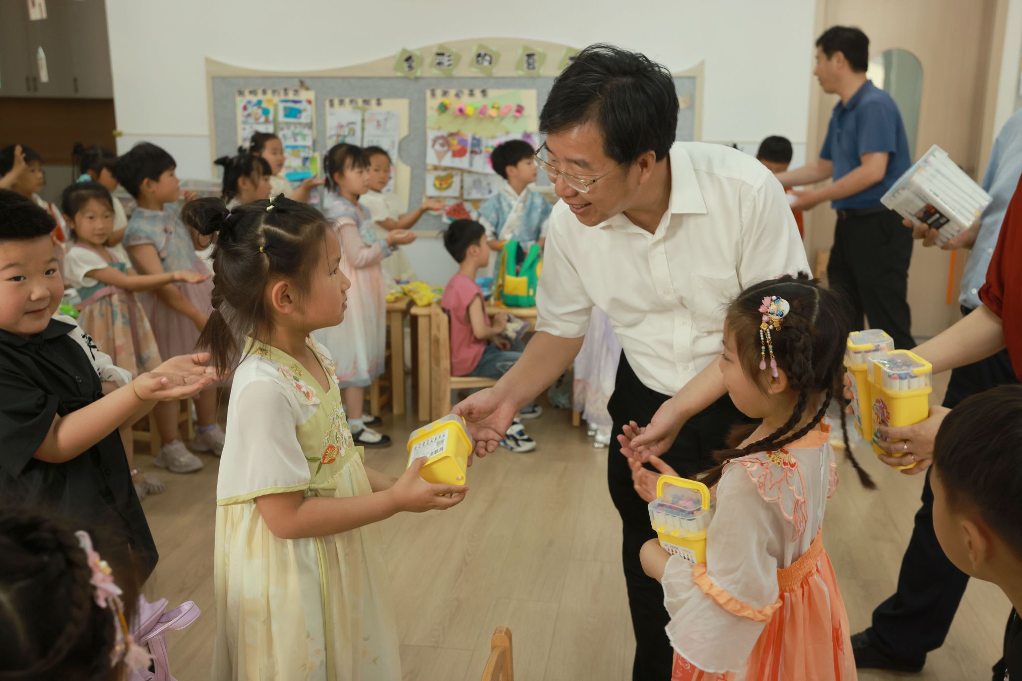 董志诚一行来到孩子们中间,为他们送上节日祝福和节日礼物,希望他们茁壮成长,孩子们也用甜甜的微笑和温暖的话语表达感谢。