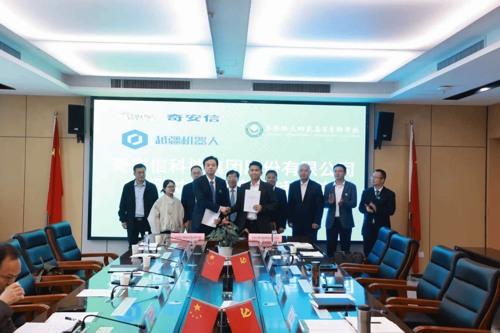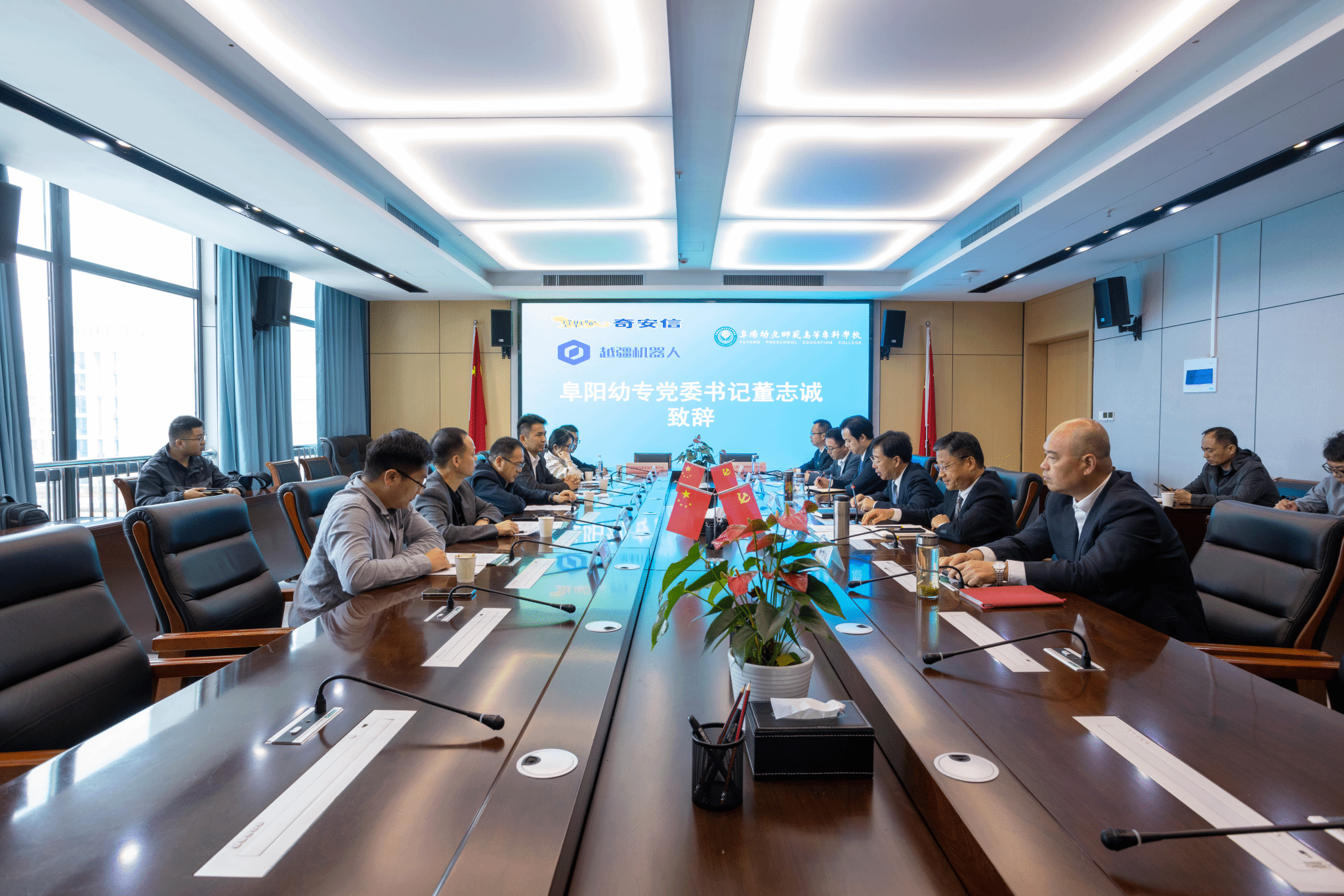 2025年10月12日上午,我校在岳家湖校区综合楼326会议室举行校企合作座谈会,与奇安信科技集团股份有限公司、深圳市越疆科技股份有限公司签署战略合作协议。校党委书记董志诚在座谈会上致辞,校党委副书记、校长汤志主持座谈会,奇安信科技集团安徽分公司总经理汪珊林、深圳市越疆科技股份有限公司教育事业部副总经理曲余深等企业代表出席,校领导刘明、徐常恺及学校相关部门、学院负责同志参加活动。